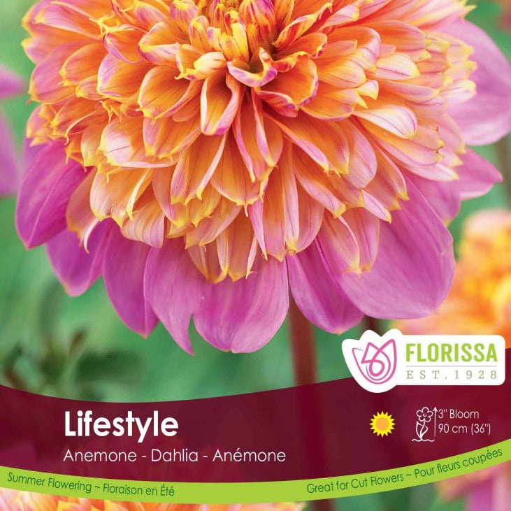 Delight in the distinctive allure of 'Lifestyle,' a captivating anemone-style dahlia. Admire its 5-inch bicoloured blooms, featuring a golden-yellow centre embraced by soft lavender-pink petals. With a compact stature, reaching only 2.5 feet tall, it's not just a visual treat but also a buzzing haven for bees!