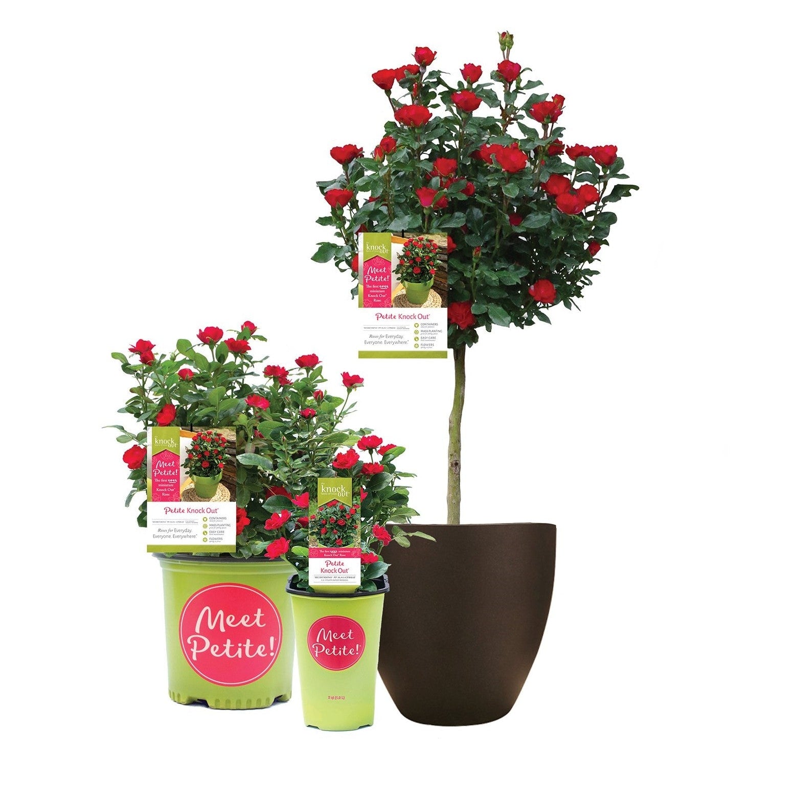 The first miniature Knock Out rose that smothers itself in deep red blooms all summer long. It makes for a great cold-hardy tree rose!