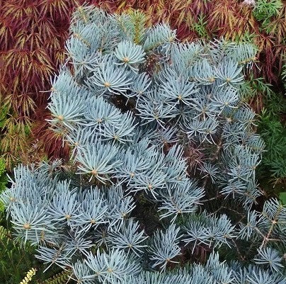 An exciting miniature form of White Fir with soft steel blue needles and an extremely slow growth rate.