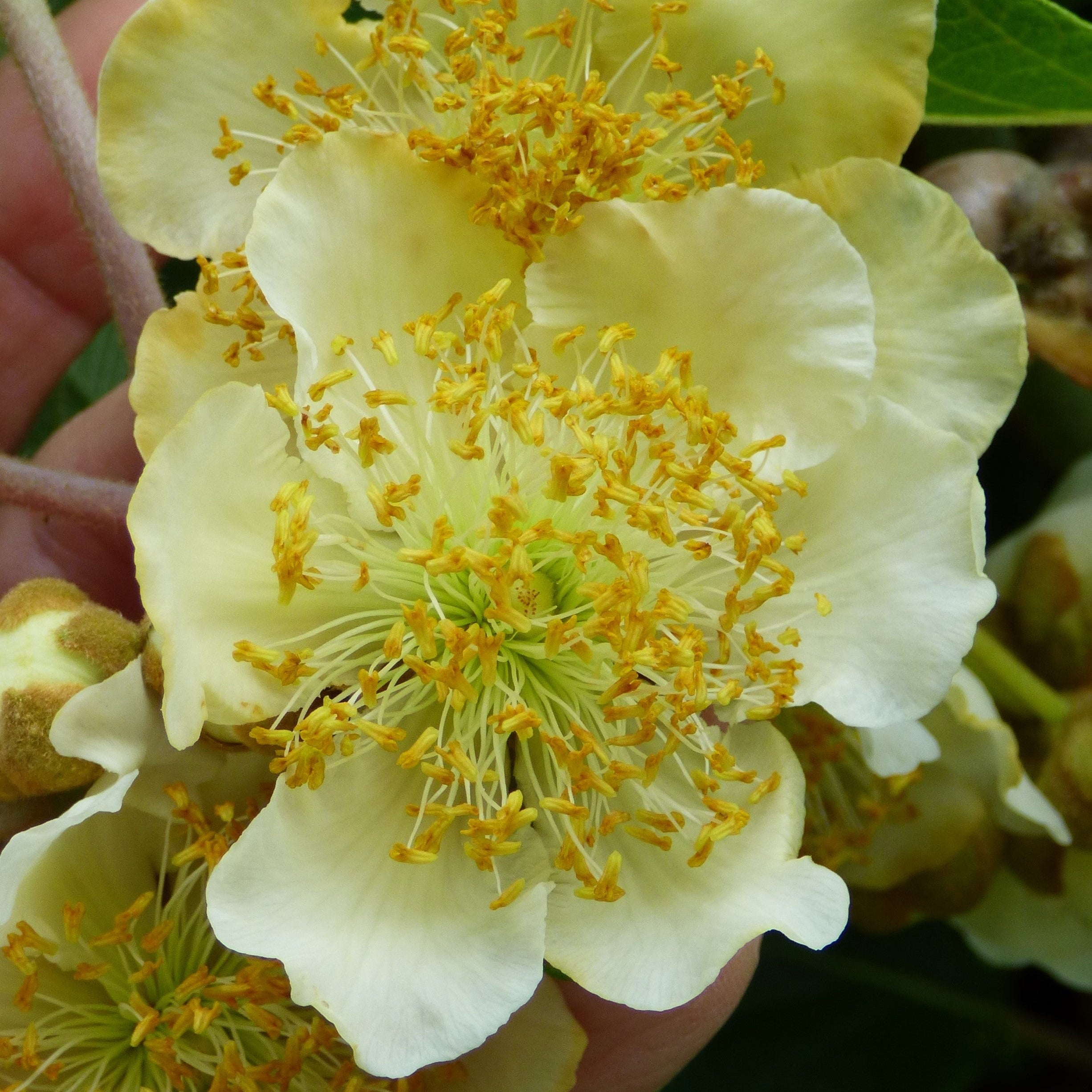 A male clone of fuzzy kiwi (pollinator for ‘Saanichton’) which produces large creamy-yellow blossoms once it matures.